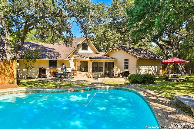 Inviting hill country home on 2.4+ acres with amazing views. Home is 4 bedrooms and 2 bathrooms, custom pool, 2 car garage and carport, wood floors, newly renovated, new paint and carpet. Heavily wooded lot with many mature trees. No city taxes, No HOA