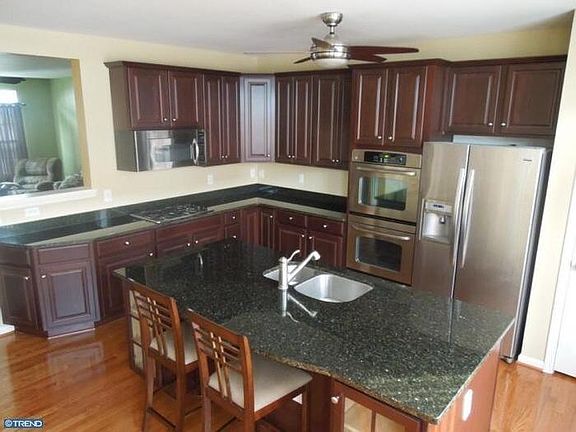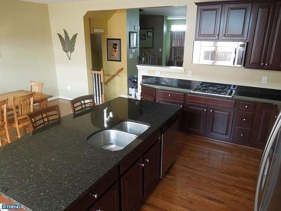 Fantastic opportunity to rent the largest model townhome in the desirable community of River's Edge. This home has beautiful views of the Delaware River from your kitchen and master bedroom. The property boasts 3 floors, approx. 2,100 square feet, and a 2 car garage. Stunning upgrades throughout! Main level is large and open concept with a great room and huge, eat-in gourmet kitchen with hardwood floors, cherry cabinets, granite countertops, stainless steel appliances, double wall oven, and oversized island with double sink. Master suite boasts an enormous walk-in closet and tray ceiling with crown molding. Upgraded master bathroom has a cherry vanity with double sinks, soaking tub, and stall shower. Great community with tot lot and dog walking areas. The community offers common areas such as a playground, putting green, bocce ball court, and gazebo to relax and take in the beautiful water views.