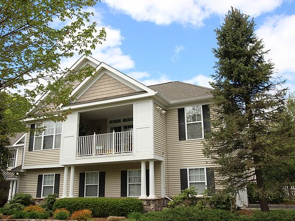 Beautiful Hamilton Model End Unit. Bright and well maintained with hardwood floors throughout. This unit features 2 bedrooms, a bonus den, and 2 1/2 baths. Main level master suite includes large walk-in closet. Four piece master bath with dual vanity, soaking tub and separate stall shower. Kitchen features gas range and eat in breakfast area. Private deck with views. Property backs up to woodlands with hiking trails. Direct access to 2 car garage from unit. New roof 2015. Tankless water heater 2016. Community clubhouse features social hall, kitchen facilities, bar billiard room inground pool and fitness center.