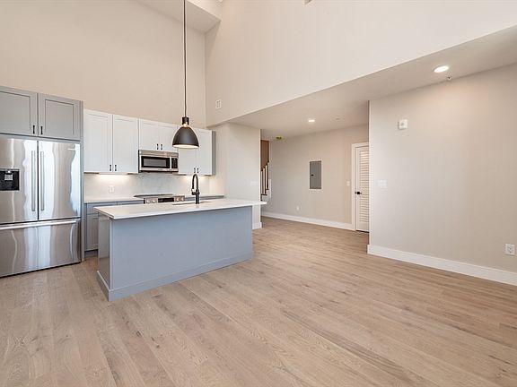 THIS LOFT IS SO COOL! And not only that, it is newly renovated and in one of the most convenient, most happening neighborhoods in Boston- Allston! Located in a renovated historic building, close to Universities, shopping, restaurants and the T, this loft style unit boasts Palladian windows and towering 18' ceilings! Enter into an open floorplan living area with ample room for your living and dining furniture. The kitchen has tons of cabinet space and a seating island, and features white and gray shaker cabinetry, stainless steel appliances and quartz countertops. The bathroom has contrasting gray and white tile along with matte black fixtures that really pop. A full staircase leads to the upstairs loft which looks down on the living area below. There is also laundry and a walk in closet on this level. Rental parking next door included for 1 year. Now is the time to get in and own your piece of Boston!
