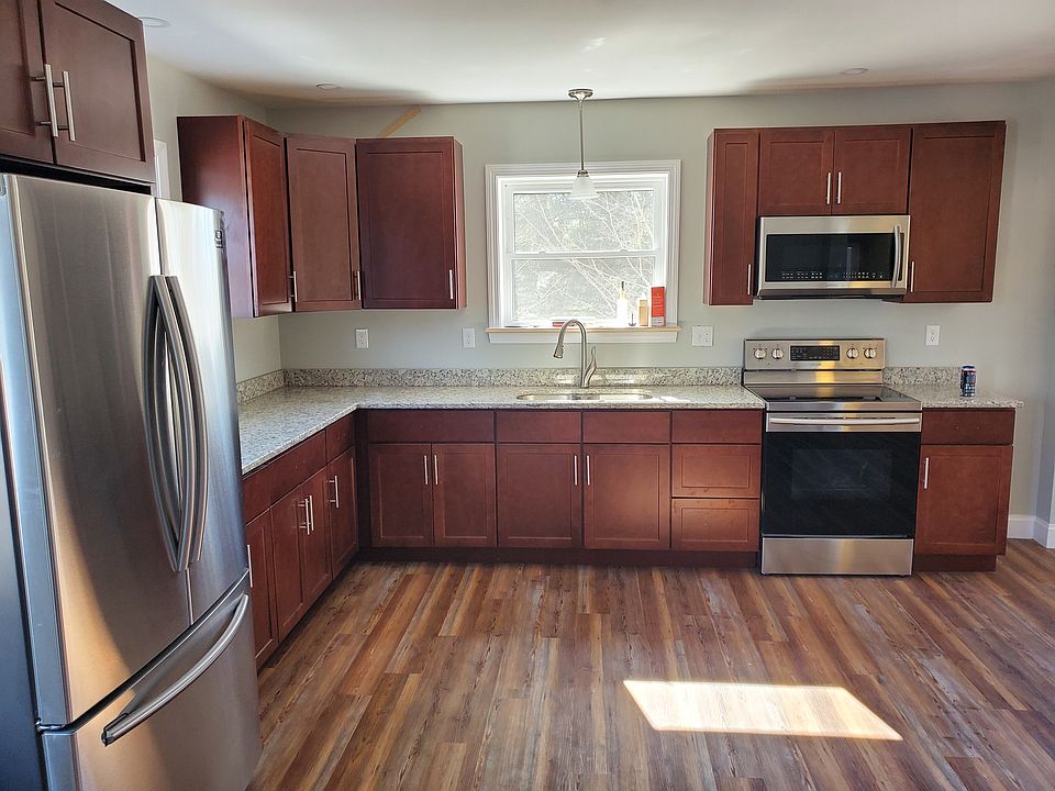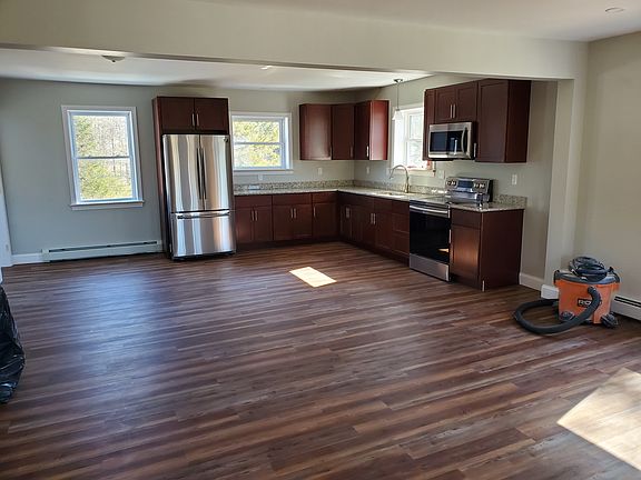 Renovated in 2019 this 1200 sf. 2 bedroom apartment boasts a private 400 sf. balcony deck overlooking a nice pond area. This is a first floor unit with a very large kitchen that has nice granite countertops. You will not be disappointed living here. Owner pays for heat, domestic cold water, plowing, dumpster for household trash, coun-op laundry, and lawnmowing. Tenant is responsible for electricity, hot water is electric, cable, and internet. NO PETS OR SMOKING ALLOWED