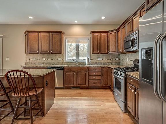 The Gates of Greenwood, A 24 unit Townhouse development. Rare Garrison Colonial styled unit with a 2 car garage. It lives like a single family. Exclusive use in the rear, located on a quiet cul-de-sac of similar aged properties. This nicely appointed unit features a 1st floor with high ceilings and an open floor plan with high end finishes including oak stairs, hardwood floors, granite counters, center island kitchen and stainless steel appliances. Central Air. Great master suite with a large walk in closet and upgraded master bath with oversized tile shower and double vanity. The second bedroom also has direct access to a full bath. Ample 3rd bedroom or comfortable office complete the upstairs.