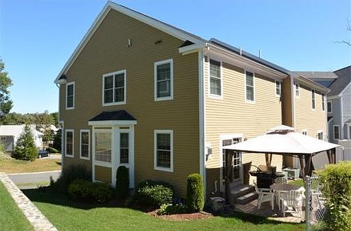 Rare offering - exceptional duplex style Townhouse at the Gates of Greenwood! Only 4 years old, these owners added quality upgrades when they bought. This unit boasts a beautiful open Living Room & formal Dining Room w/ bay window, gleaming wood floors, high ceilings & great light. The sunny Family Room with gas Fireplace leads to a lovely private patio and nice green space. The stylish Kitchen has quality cabinets, tons of granite counters and SS appliances. The spacious 1/2 bath completes the first floor. Upstairs offers 3 very nice sized bedrooms, including a gorgeous Master Suite with custom walk-in closet, luxurious dual-head tiled shower stall, and double granite vanity. This well designed home has incredible closet space throughout, including one that makes a perfect office. The lower level provides an excellent mud room, great raw storage & access to the 2 car garage. Central air, in-unit laundry, gas heat, great landscaping, all in an excellent neighborhood setting.