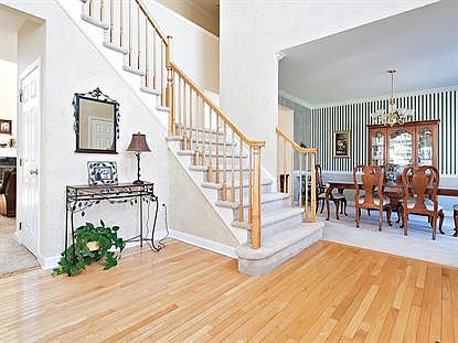 This showcase home on a gorgeous .91 acres is surrounded by lush landscape and a paver patio. The spacious sun filled rooms offer a floor plan that is perfect for entertaining. The LR with its column entry, formal DR and FR with dramatic 2 story ceiling and fireplace. The Kit is a chef's dream with a large center island with breakfast bar seating. The hard wood flows from the prep area of the Kitchen and Breakfast Room to the gorgeous Sun Room with custom windows and views of the private backyard. Completing the first level is an intimate Study, a Powder Rm and Laundry Rm. The second level hosts all four bedrooms and 2 f/baths, a MBR Suite with a cathedral ceiling and two large walk-in closets. The MBR Bath boasts a corner whirlpool tub . A bonus feature of this home is a full finished lower level.
