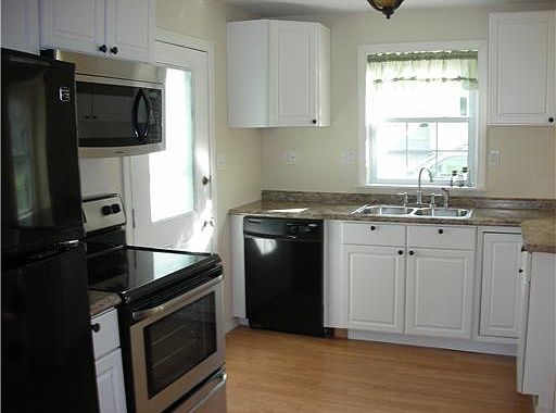 Remodeled in-town Ranch, impeccable throughout. Features brand new kitchen w/bar area and new appliances, living room, 2 bedrooms, new tiled bath, all new windows, siding, roof. Quiet residential street, paved drive, landscaped, great curb appeal.