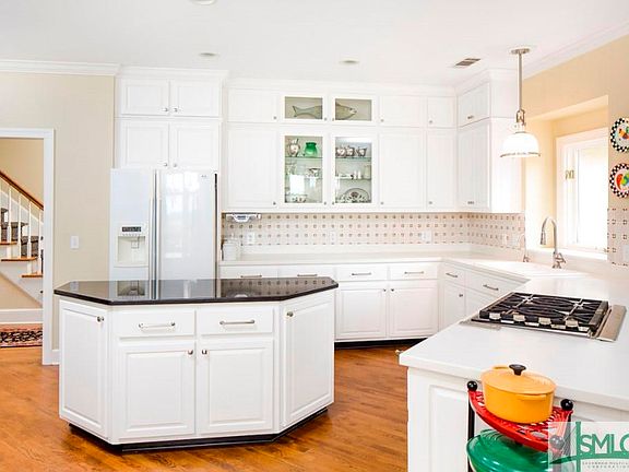 Sunsets from your screened porch. Marsh and Intracoastal in distance. 3 or 4 BR, Study, Living Room & fireplace. Beautiful lot with circular drive, leaded glass entry. Both bedrooms up have balconies. 10 ft ceilings on first floor. Bonus with full bath.