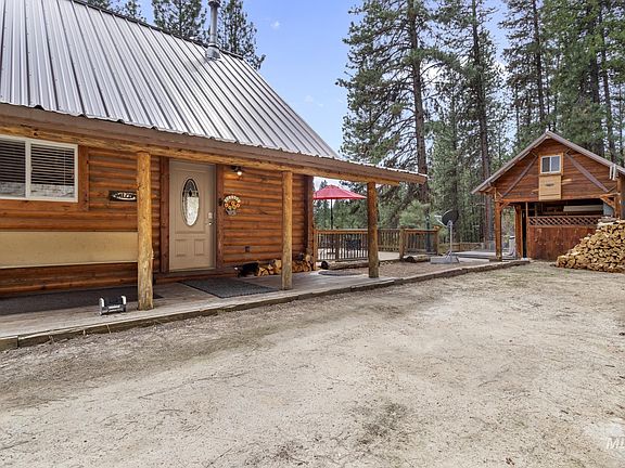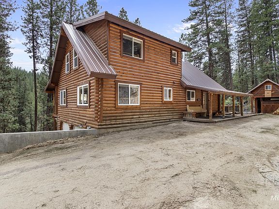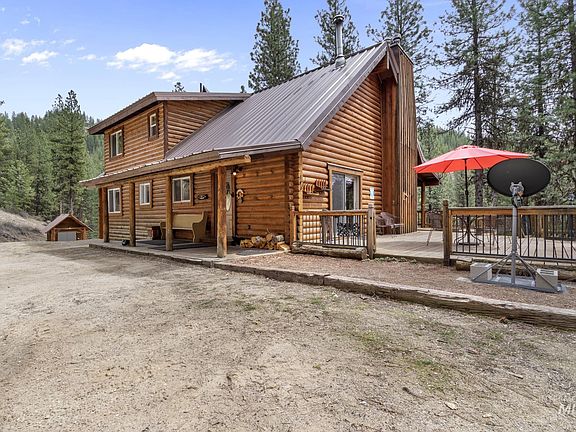 Stunning Log Home on over 8 acres on the outskirts of Idaho City with year-round easy access from HWY 21. This home has the perfect mix of "Off-grid" living with everything needed for self-sustaining, year-round living. No detail missed with Solar System and Generator Power system, underground 1000-gallon propane tank, 1500-gallon Water Tank and Well. Open concept that flows nicely with vaulted ceilings and beams, hardwood floors, top notch cabinetry, granite slab island, tasteful lighting and stainless appliances. This cabin is the perfect blend of casual elegance. Amazing deck and outdoor living space at its finest, even a quaint treehouse for the kids! Finished basement for entertaining and family fun. Sprawling 8 acres with impressive 48x32 Out-building/ shop with RV parking. Just a short 5 minutes from Idaho City and you are in your personal mountain paradise. Come take in the view and soothing sounds of creek from balcony, you won't want to leave!