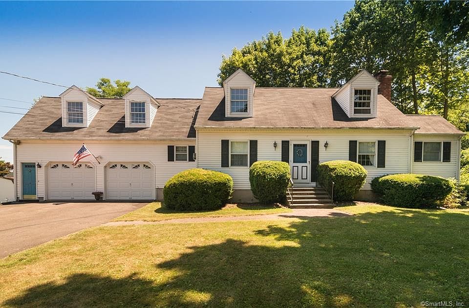 Great contractor opportunity, room for expansion! 4BR 3BA Charming Cape built in 1981, just off exit 5 with In law apartment - both interior access (from upstairs) and separate entrance (on side of garage). Main level offers living room (hardwood under carpet), fireplace, office with french door, dining room, eat in kitchen, laundry. Primary bedroom with full bath and walk in closet. In law is plumbed for kitchen, has full bath, den, bedroom and separate exit/entrance. Lower level you'll find playroom/family room, storage room and convenient pass through hatchway from basement to garage. 2 car garage has lots of space and a great storage room in back. Property is connected to sewer and is currently on well. City water is in the street and can easily be connected. Loads of parking with the 3 driveways and 2 car garage! End of cul de sac location, conveniently located near shopping, schools & I-84. Roof new in 2006. Water heater (50 gal digital hybrid) new in 2014. 10 minutes from NY line!
