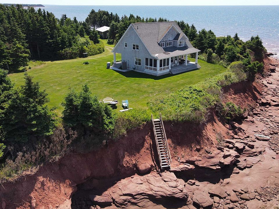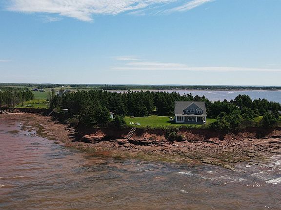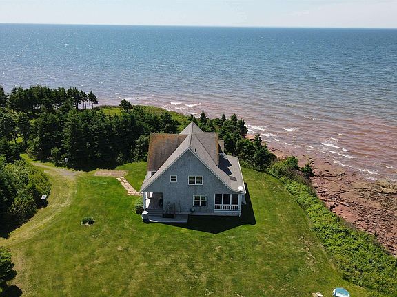 Situated on a point, the house offers views of the ocean from every window. Your first view in the morning may vary from a fishing boat to a sail boat or from sea birds to maybe even a seal or two. With five bedrooms and 3 baths, living room with vaulted ceilings, screen room facing the water, a large roofed (446 x 85) verandah and spacious (316 x 12) deck overlooking the water you will find there is more than enough indoor and outdoor living space for you, your family and the grandkids too. For sure you will enjoy spectacular water views as well as privacy along with all that PEI beachfront living can offer. The main level sports a modern kitchen with all new appliances and is complimented by a dining room overlooking the water, spacious laundry, 3-piece bath and bedroom leading to the screen room. At low tide you can explore tide pools for sea creatures with sandpipers, plovers, kingfishers, gulls, herons, bald eagles and more as your companion. At high tide, enjoy the warm waters of the Northumberland Strait with paddle boards or kayak, or just relax and walk the beach. The evenings offer spectacular sunsets over the Confederation Bridge. Watch them from the comfort of the screened-in porch with a glass of wine or from around the fire pit while roasting marshmallows. At the end of the day, fall asleep to the sound of gently lapping waves and a view from your bed of the moon shining onto the water. It comes fully furnished with all contents except for a list of personal items to be provided and may not last long. Adjacent waterfront lot is available to Purchaser for $150,000.00 if they would like additional land.