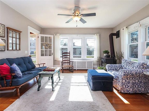 Fabulous home in Warwick Neck. You'll feel right at home in this lovely sunny and bright 3 bedroom, 2 bath home. One bedroom and full bath conveniently located on the first floor, the family room opens out to the deck and pool. This is a great home for entertaining with large dining room, living room has wood burning stove that keeps the house toasty warm all winter. Features include updated heating system and newer roof. Charming wood paneled front entrance hall, hardwood floors. Spacious full basement could be finished for additional living area. The back yard is fenced in and the entire perimeter of the property has invisible fence for pets. Off street parking for 3 cars and garage.