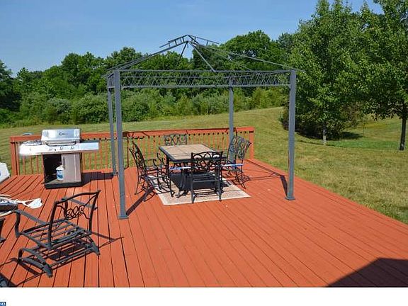 WOW! Fabulous Country Meadows colonial on quiet 1.34 acre tree lined corner lot. Fantastic views from the gorgeous Sunroom and huge deck which leads you into a refreshing above ground pool. Features of this home include formal living room or office, formal dining room, kitchen with recessed lighting, island, breakfast area overlooking a spacious family room with new berber carpeting and a sunroom with vaulted ceiling, 2 ceiling fans and sliding door to deck. The 2nd floor includes a master bedroom with vaulted ceiling, 2-walk-in closets, sitting room and a master bath with a separate shower and soaking tub, 3 additional bedroom, hall bath and convenient 2nd floor laundry. The lower level includes a full finished walk-out basement with extra storage. Other features include newer air conditioning system, 6 panel doors, propane heat and hot water, powder room with wainscoting, an oversized garage with electric opener and plenty of space for storage and work area, kitchen with gas cooking, microwave, double sink, dishwasher and pantry, easy access to route 422 and shopping.