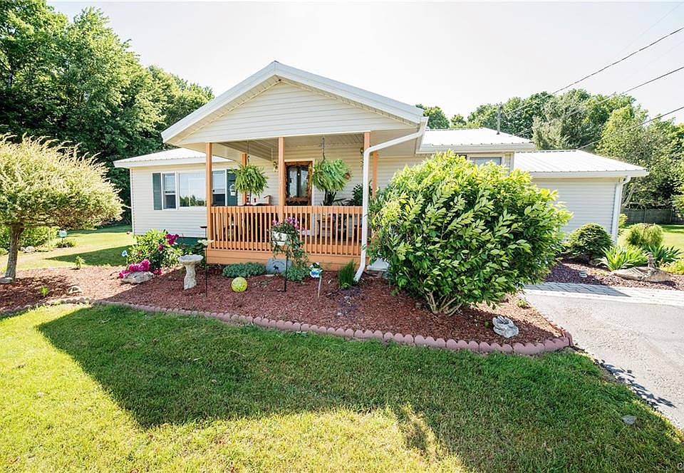 Beautifully updated stick built ranch home on over two acres of land is one floor living at its finest! This lovely home features a new front porch, updated carpets and kitchen - including cabinets and appliances, a small addition is used as an alternate entry/office. Three bedrooms, one and a half bathrooms, a full basement for plenty of storage, and first floor laundry. Outside there is a large detached two car garage for plenty of outdoor storage, as well as a new pool with a deck and fence. Updates include New Appliances, Counters, Well, Pool, Water Softener..and more! This home is an absolute must-see!