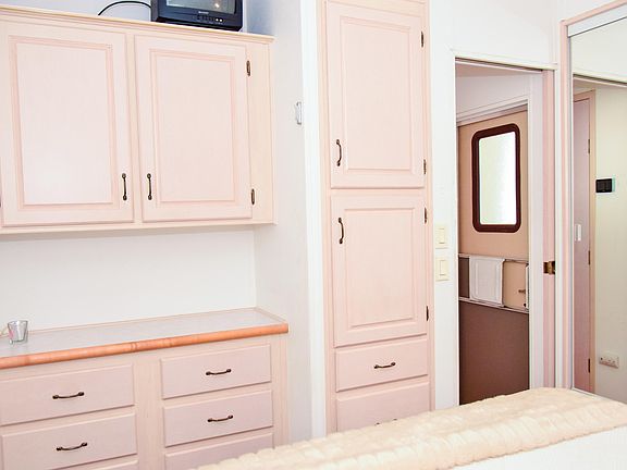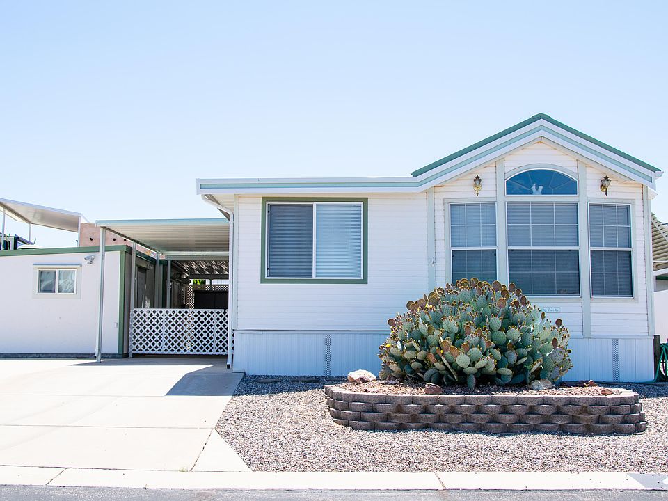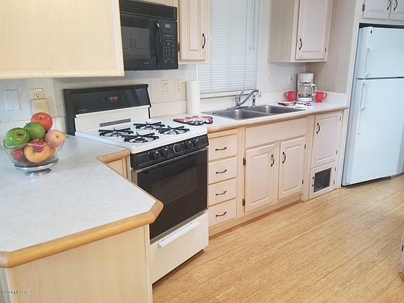 WELCOME HOME! This well loved Park Model beauty offers tons of extras. Add-on multipurpose room, efficient kitchen w/ bamboo flooring, incl. gas range, GE microwave & Hotpoint refrigerator, double stainless steel sinks & lots of cabinets. Eat in kitchen/dining area w/ built in china cabinet w/ lights. Bedroom w/ built in cabinets under mirrored door closet and built in dresser. Covered front deck opens to covered patio with two Rubbermaid, well sealed, lockable storage shed/closets & a third Storage shed/closet. Large laundry/utility room w/ sink & washer & dryer, counters, cabinets & window AC, Workshop/storage shed, both insulated, & have sky lights. Rolling cabinets under porch deck. Metal roof installed 2 years ago. PLUS added security and advantages of a Gated Active Adult
