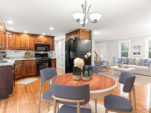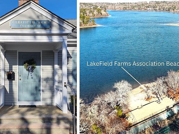 Welcome to this charming Cape style home nestled on a spacious half-acre lot with deeded beach rights and Lakefield Farms Association clubhouse,tennis court & Lawrence Pond beach offering the perfect blend of comfort and recreation.Tucked back from the road & buffered by an enclave of mature trees, large rhododendrons plantings giving front yard much privacy.A convenient first floor bedroom, updated bath with large tiled walk-in shower & new vanity.Two more bedrooms up w new carpets & full bath. The large eat-in kitchen showcases cherry cabinets new countertops and updated appliances, creating a warm and inviting space.The fireplaced living room provides a cozy retreat.The side entry mudroom gives easy access to an oversized garage with high ceilings,a steel beam & loft storage above, adds practicality and potential versatility to the property. Outdoors, the yard is equipped with an irrigation system, a storage shed, a delightful patio, and even a tree house, providing a haven for outdoor enthusiasts of all ages. This home has been freshly painted and hardwood floors polished and gleaming, presenting an excellent opportunity and ready to move-in condition
