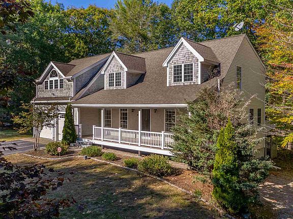 Curb appeal and charm come with this 3 bedroom, 3 bath dormered Cape Cod style home in Cape Neddick. The covered front porch offers an inviting entry to the shingled exterior adorned by well-maintained landscaping. The first level provides open-concept living featuring a living room with gas fireplace, informal dining area, and a spacious kitchen with center island, all of which are highlighted by beautiful hardwood flooring and a large deck which overlooks the back yard and forested views. Finishing the first level is an additional space that could be used as a formal dining room or as a second living area. The second level hosts a quite large primary bedroom suite highlighted by wide plank pine flooring, vaulted ceilings, French doors that lead to a private deck, walk in closet, an adjacent bonus room, and a spacious en-suite bath featuring a walk in shower and a double vanity. The 2 additional bedrooms on the second level include ample closet space and share a full bath with a double vanity. A full walkout basement makes for handy storage, and could be finished to create additional interior living space. A whole house generator finishes this wonderful offering. Tucked off the beaten path on a quiet road that is only a short distance to area beaches or Mt. Agamenticus recreation area, this home offers privacy while being close to all that the area has to offer.