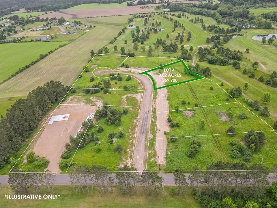Lot 4 - Greek St for sale (0.82 acres), listed at $59,900. Tax parcel number 024-3107-183-9942. Pristine building site at Golf Course Ridge Subdivision with elevated views along the back 9 of Merrill Golf Course, on a quiet cul-de-sac road. Locally-respected and regionally-renowned, 18-hole championship golf course with a club house, manicured grounds and long-standing history (the front 9 has been around since 1926, and the back 9 added in the early 1990s). Multiple lots for sale just shy of 1-acre each (ranging from 0.65 acres - 0.84 acres) - some of which with the potential for a walkout lower level (lots 2 - 6). The subdivision is already equipped with WPS electric and natural gas service (run underground). Future home sites will need a private well / septic installed (sandy soil composition, likely to perk for a conventional system; however, buyer due diligence to be conducted). After the majority of the lots are built on, the owner/developer plans to pave the street & the municipality (Town of Scott) will maintain the street including snow removal during the winter months.,Great location - close to Wisconsin River, Riverbend walking trails, on the south side of Merrill - a quick commute to Wausau, with several community parks and boat launches nearby. Great opportunity to build your dream home in a picturesque location. Call for more information! This information is compiled from miscellaneous sources and is believed accurate but not warranted. Neither the listing broker nor its agents, sub agents or property owner, is responsible for the accuracy of the information. Buyers are advised to verify all information.
