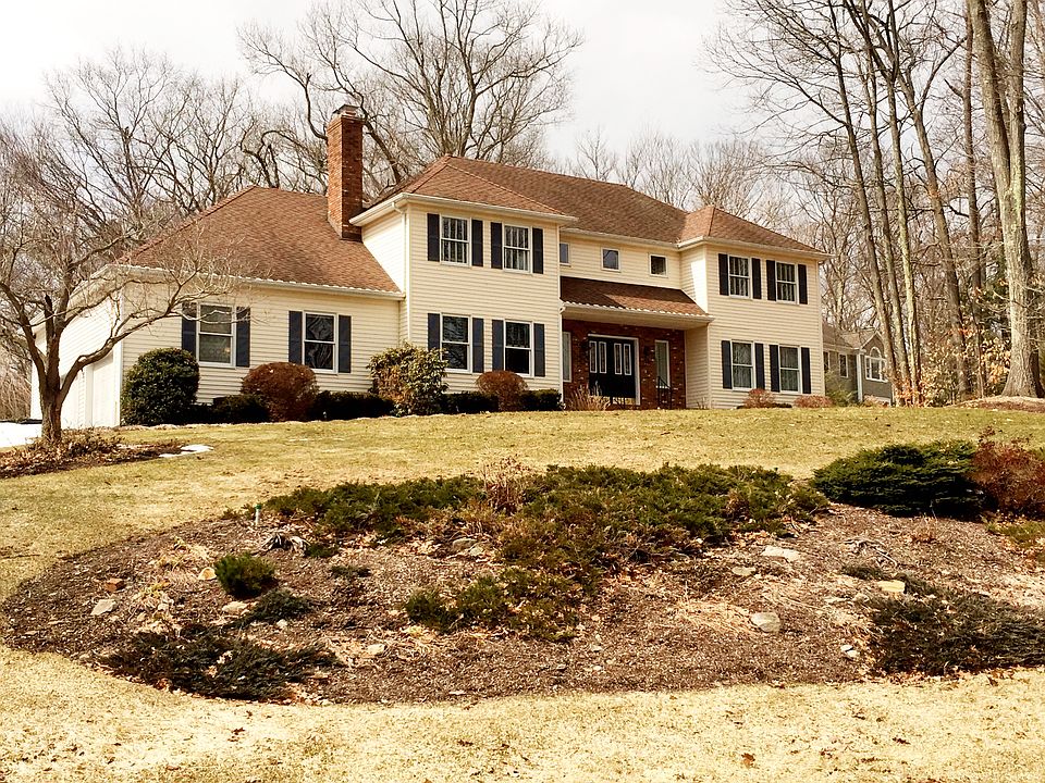 Stunning Colonial makes a lasting impression. Inviting two story foyer and gleaming hardwood floors. Entertain with flairand thrive daily in comfort .Sunken living room and dining room for special occasions.Open floor plan includes a bright eat in kitchen with granite countertops, atile backsplsh, center island, a walk-in pantry, buffet counter, eating space for eight and sliders to deck. The handsome family room has a stone fireplace. There is a mudroom by the laundry areawith a seperate backyard entrance. All bedrooms have wall to wall carpeting, ceiling fans, and ample closet space. The master bedroom suite=sanctuary! Huge walk-in closet, full bath, double sinks, seperate area for Jacuzzi tub, stall shower, skylight, second walk-in closet. The walk-out lower level has a bonus room with sliders, refrig, full bath, office and worksho[. Add a kitchen to make this an In Law apartment. (The lower level adds 1100 square feet of finished space .) Gorgeous in ground pool. Convenient location.