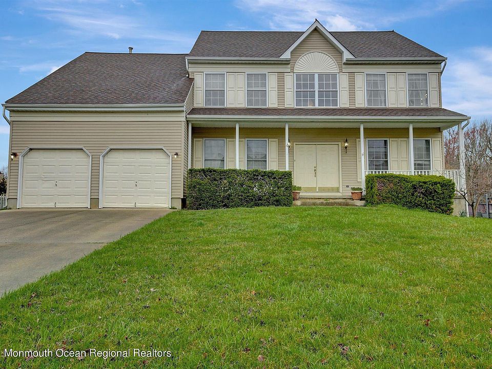 Beautifully maintained 2800 sq ft Colonial located in the desirable Centennial Pnt community in Howell, NJ. This home is the definition of picture perfect! It offers a front porch, double door entry, two car garage & oversized driveway plus stunning interior features including two story foyer, crown molding, hardwood flooring throughout & recessed lighting.