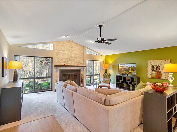 The exterior offers a newly paved circular driveway, professional landscaping that will be full of surprises in the spring, and handsome stone pavers leading to the front entry. Inside, expert craftmanship is evident in every detail including crown molding throughout the home. The floor plan is perfect for entertaining. The large great room with vaulted ceiling, floor to ceiling windows and a beautiful fireplace are beautifully decorated and separate the master suite from the guest room. The dining and kitchen are spacious and overlook the light-filled sunroom with coffered ceiling and great golf course views. Off the sunroom is a newly finished small 3rd bedroom large enough for a twin bed or twin bunks. This bedroom has an egress and a freestanding closet/wardrobe. The sunroom opens to a large deck for more golf course views. An underground fence was recently installed. The large master suite has a walk-in closet and modern bathroom with custom cabinetry. The large guest room with walk-in closet is on the opposite side of the home from the master, providing privacy for everyone. This home comes completely furnished (except for 3 framed photographs in the master closet) and the seller’s personal items in drawers and cabinets. There is an attached shed that provides ample space for your yard tools and lake toys! Don’t pay condo regime fees and enjoy the comforts of a cozy, modern cottage starting now!