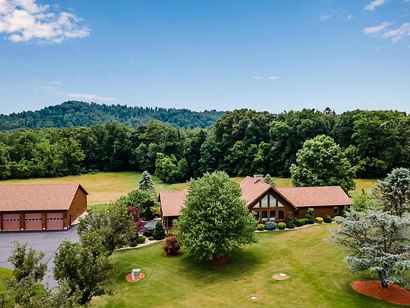 HUGE PRICE ADJUSTMENT, NEW UPDATES!  Rare opportunity to own this custom-built log home situated on over 7 well maintained acres.  These unique properties don't come around often!  This 3-bedroom, 3.5 bath home features gorgeous panoramic views, vaulted living room with large loft, 2 stone fireplaces, and all-season room with direct access to large rear deck, ideal for your morning coffee.  For entertaining or additional living space you'll enjoy the huge  1400 sq. ft walk-out finished basement with full bath.  All of this built upon poured superior foundation walls!  A car collector's dream with additional 2500 sq. ft. detached, heated, 4 bay garage, which comes complete with large loft area, separate office, full bath and 10ft. doors.  For your added security, this property also includes driveway sensor alarm system.   This stunning log home situated down a private lane on a secluded cul-de-sac is simply waiting for your personal touches to create an amazing, unique homestead of your dreams.  Additional improvements include a new house roof July 2020, garage roof May 2021, A/C unit July 2021, hot water heater in garage July 2022 and furnace was replaced June 2017.  Schedule your private showing today to truly appreciate all the beautiful craftmanship in this home. Definitely a property like no other, imagine calling this one HOME!