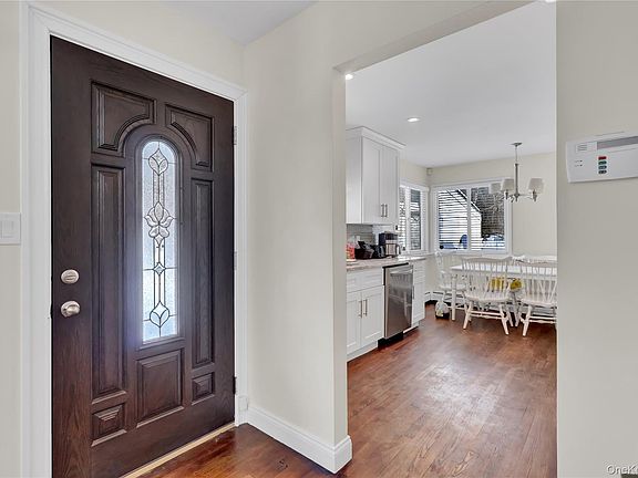 Beautiful, well-maintained home with a bright, clean white exterior, ideally situated on a low-traffic cul-de-sac. A newly asphalted driveway leads to custom stone steps and a welcoming entry. The main level features three bedrooms and one full bathroom, with wood floors throughout. The layout includes a spacious dining room, kitchen, and living room overlooking the pool and multiple patios.
