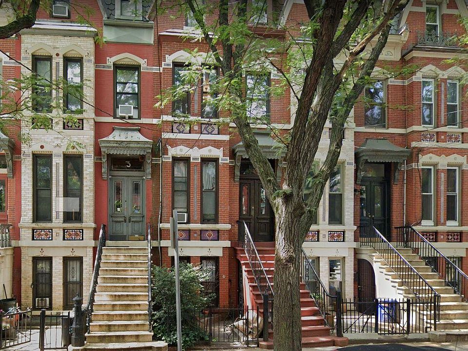 - Top half of a brownstone in the Van Vorst Park neighborhood (the one with the red steps in the photo) - 5-minute walk to the Grove Path train - Private front entrance with vestibule - 2.5 floors of space - Large rooms - Can be 2 or 3 bedrooms - Plenty of storage - 1.5 bathrooms - Washer and dryer upstairs - Dishwasher - 3 decorative fireplaces - Skylight in the upstairs hallway - High ceilings - Playground and basketball court right across the street