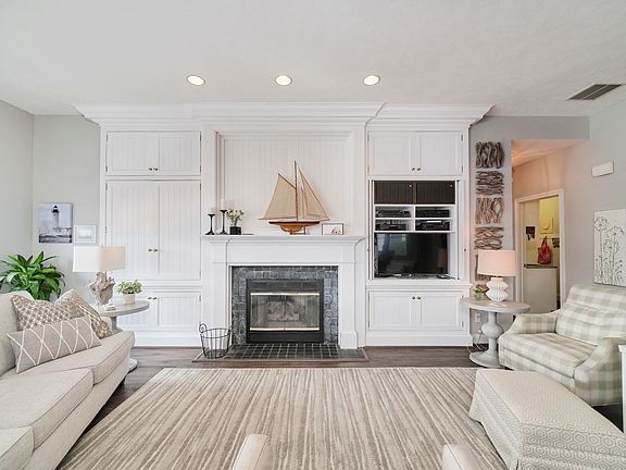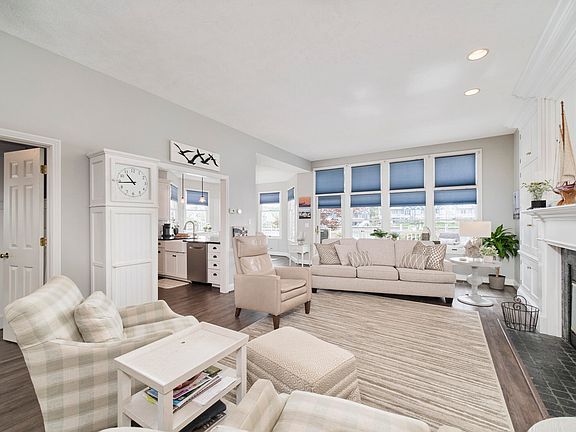 This Harbor Village condo offers the best of Lake Michigan living—beach, boating, and luxury all in one. Located on a quiet dead-end street across from 5th Avenue Beach, this single-level 3-bedroom, 2-bath home features an updated kitchen with granite countertops, a spacious living area with built-in entertainment center and fireplace, and durable luxury vinyl plank flooring. The primary suite provides comfort and privacy, while the third bedroom with a Murphy bed adds versatility. With a 50' deeded boat slip, a 2-car garage, and a composite deck with awning, this is coastal living at its finest. The property is being sold fully furnished. In the event there are multiple offers, the seller reserves the right to set an offer deadline. Harbor Point does not allow vacation rentals.