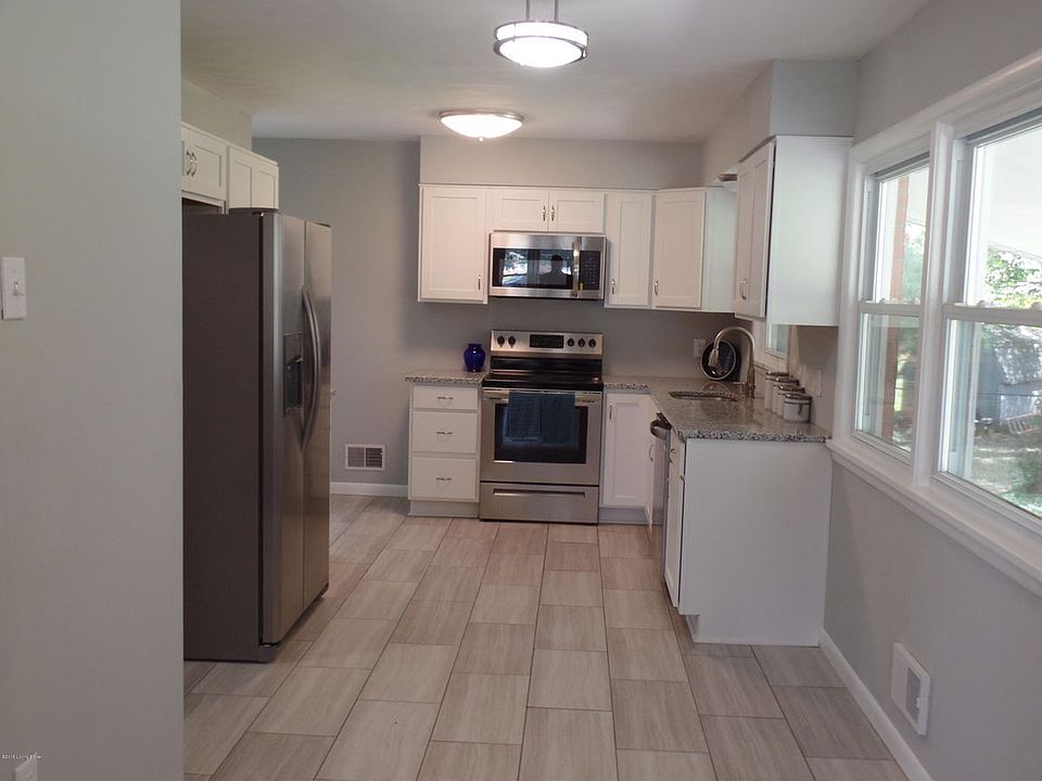 Super Updated Brick Ranch with so many extras and located in a top area near schools and shopping. This 3 Bedroom and 1 huge bathroom home has so many updates that a new owner can just move in and enjoy without doing anything. Sellers have spent a lot of time and money updating and remodeling this home with Total remodel on Kitchen and bathroom, adding new roof and gutters, double pane windows, new insulation in attic, refinishing all of the hardwood floors through bedrooms, hall and living room. The Kitchen has new custom white cabinets, granite, and new stainless steel appliances. Bathroom has new double sink vanity, flooring, new tub and porcelain tile surround, and toilet. Seller added new HVAC. Basement is unfinished but great for storage and space for children to play.