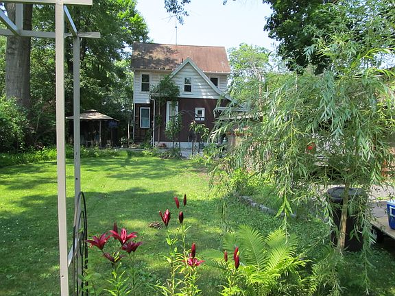 This home is accessed through an automated gate through which a fenced-in property is revealed. You'll immediately note the detached garage with a new metal roof & a separate workspace that is heated by a pellet stove. The house 4 bedrooms & 2 full bathrooms. Enter the house from the driveway through an enclosed porch to the kitchen with a pantry. The main level offers flexibility with a full bath & two bedrooms, one of which could also be an office or a den. There are two washer/dryer sets, one in the 2nd floor bathroom and one in the basement. One of the two 2nd floor bedrooms has accessed to an unfinished space ideal for storage. Two zone heat is supported by an energy efficient Buderus boiler. The 200 amp circuit breaker has been clearly labeled. This home is a great value.