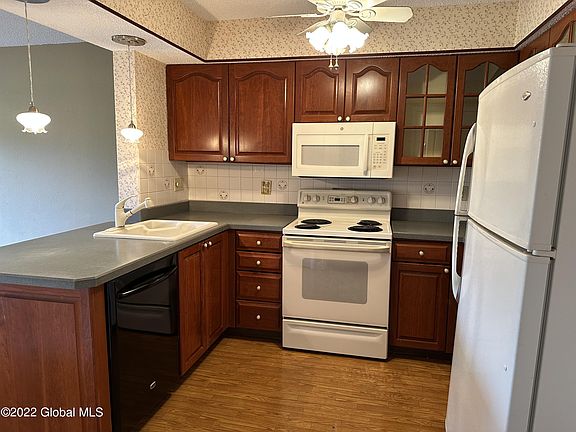 Welcome to Spring Meadows!! Maintenance free living at its finest in this bright, 2 bedroom, 2.5 bath townhome w/attached garage in a quiet cul-de-sac setting in North Colonie Schools. First floor boasts an open floor plan that includes living room with gas fireplace, dining room, kitchen, half bath, laundry and sliding door that leads to an oversized deck and landscaped, lush green space.
