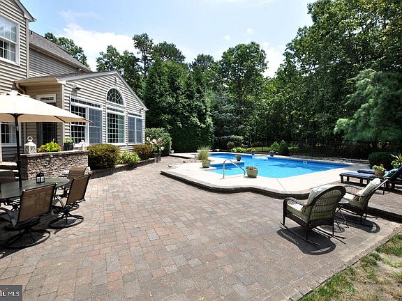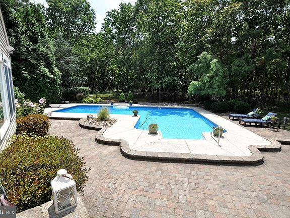 This exceptional, Bob Meyer custom built home is located on a quiet cul-de-sac in one of Medford's most desirable communities of Highbridge. Situated on a 1.25 acre lot and backing to open space, this home offers privacy and a picturesque "resort-style" back yard with a heated in-ground salt water pool (filter and Polaris under 2 years old)and paver patio and walkways walkways. Surround yourself with quality and beauty both inside and out. This beautifully expanded “Fairmont” model features hardwood floors, custom wood work and trim, warm tones, professional décor accents, designer lighting and so much more. The gourmet kitchen includes a large center island, granite counter tops and cherry cabinetry. One of the many custom features of this home is the addition of an expanded breakfast room surrounded with dramatic windows offering panoramic views of the back yard. A built-in Butler’s area includes custom cabinetry, a counter top and beverage refrigerator, perfect for entertaining. The Family Room features a two-story ceiling with floor to ceiling windows providing an abundance of natural light. The wood burning fireplace is accented with a handsome mantle, custom trim and molding. There is a built-in entertainment system with a TV. French doors open to a first-floor study with custom built-ins. Another one of a kind feature of this amazing home is the First floor Owner’s suite. Features include a tray ceiling, custom lighting and a gas fireplace. A French door opens to the back yard and pool. A pocket door reveals an amazing custom walk-in closet with tons of storage space. The private bathroom defines luxury with its’ custom seamless glass shower, soaking tub, heated floor and a wraparound vanity with dual sinks. A back staircase leads to the second floor. The hall is open to the first floor offering sweeping views. Here you will find a second Master bedroom with a spacious master bathroom and walk-in closet. There are three additional bedrooms and a full hall bathroom. The basement is beautifully finished with a full bathroom, Media room, Game room and Exercise room. There is also plenty of extra storage space. The picturesque fenced in back yard, backs to open space with tons of privacy . You'll enjoy endless hours relaxing or entertaining family and friends with a spacious heated salt water in-ground pool and a large multi-level paver patio. Additional amenities include a 3 zone HVAC - Air Conditioning Unit(s) have been updated, 3-car garage with a large driveway with additional parking, built-in speakers throughout, lots a recessed lighting, ceiling fans, custom window treatments, irrigation system and shed. Medford's downtown Main Street, offers a wide variety of restaurants, quaint shops and craft breweries. You will also enjoy the library and parks along with numerous festivals throughout the year including Food Trucks, Wine festival, the Halloween parade and the Dicken’s Festival. Close to Freedom Park with its natural walking trails, picnic pavilions, a community garden, tot lots, basketball courts, a dog park and so much more. Easy access to all major highways and close to Philadelphia and the Jersey Shore.