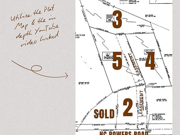 Lot 4 is marked with survey markers on the corners of the lot. Looking directly from HC Powers paved road Lot 4 is to the right of what will be the easement. It is still partially wooded, utilize the video link for a thorough walkthrough.
