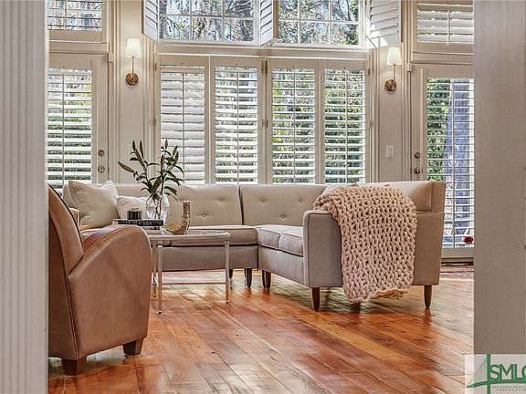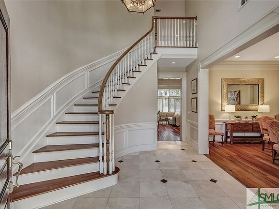Stunning Georgian-style home in Midpoint at the Landings features reclaimed heart pine hardwood floors, and a gourmet kitchen with Thermador gas appliances. The two-story living room and library have charming fireplaces, while the rear of the home offers a beautiful wall of glass overlooking lush gardens. Craftsmanship is evident throughout, from custom built-ins to exquisite millwork. The luxurious Primary Suite on the first floor includes a custom closet and lavish en suite bathroom. The property's elegance is further enhanced by a formal side garden, impeccably maintained landscaping, a fire pit and a Koi pond on the raised terrace for alfresco dining and entertaining. New Roof and HVAC's. The Landings Resort-style amenities include 6 golf courses, 9 restaurants, 5 clubhouses, 2 marinas, tennis courts, pickleball, bocce, pools, trails, and more for a luxury living experience (some amenities may require additional fees). Enjoy the Landings Lifestyle in this exceptional home.