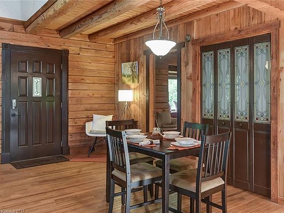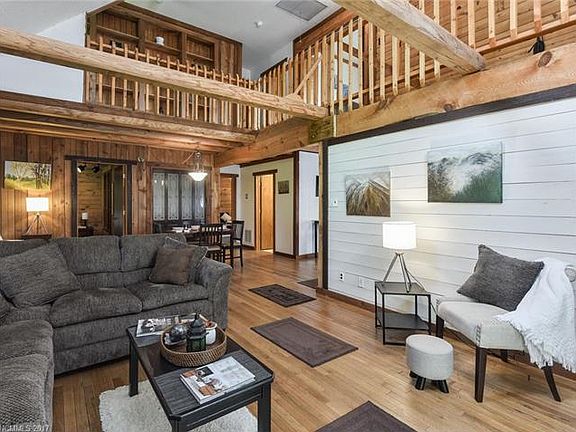 Beautiful log home on 3 acres. Full drive in basement. Hardwood floors in the living room and dining room, wall to wall carpet in the bedrooms, ceiling fans, whole house fan, central air/heat, french doors, large walk-in closets, built in book shelves, porch and deck with views of Mt. Pisgah.