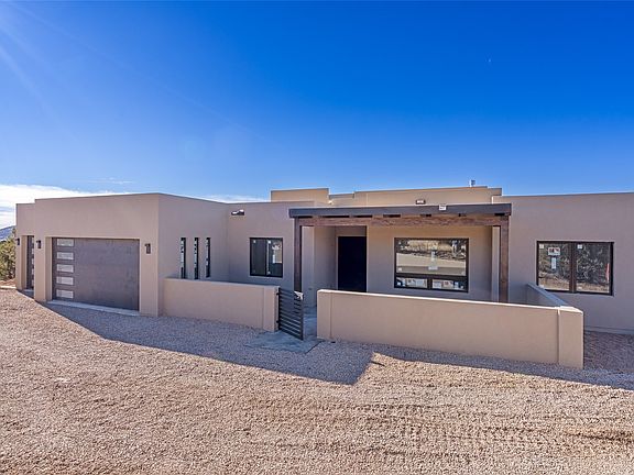 Set on 2.6 acres with sweeping desert and mountain views, this new 2,794-square-foot home is being thoughtfully crafted to blend clean modern design with traditional Santa Fe style.