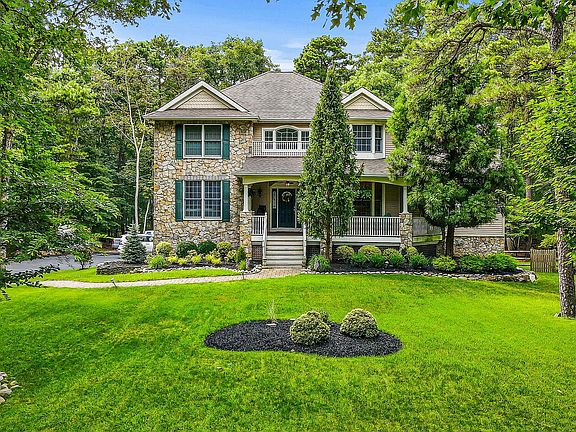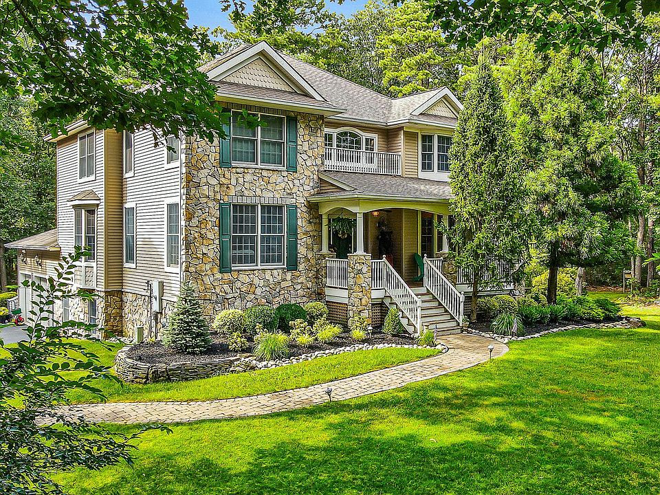 Welcome home to 4 High Point Drive. This 4 bed, 4 bath home on nearly 5 acres in the Lakeside subdivision of Medford Township is sure to impress. As you drive down the private, tree lined driveway, you will find the immaculate landscaping and upkeep of the property. Enjoy the beauty of nature with the pristine naturally sculpted woods and moss covered private hiking trails. You will also find a large private lake which provides tranquility, fishing, and water sport fun. With 250 feet of lakefront, you can enjoy kayaking and fishing from your own private dock. Upon entering, you are greeted by a majestic foyer featuring a vaulted ceiling, open staircase, stunning wood floors, and crown molding that elegantly integrates the natural environment. To your right is the private office, featuring front facing windows that bring in an abundance of natural light and showcase the hardwood floors and crown molding. To the left is the spacious formal dining area, perfect for hosting and entertaining family and guests. The kitchen is situated conveniently off the dining area and offers a wealth of amenities and features. Granite countertops, custom tile backsplash and 42" maple cabinets with decorative crown molding provide an elegant backdrop for large-scale meal preparations or intimate family dinners. Additional features, such as a wine rack, built-in desk, breakfast bar island with gas cooktop and double ovens, make this kitchen both beautiful and highly functional. The living room seamlessly flows from the kitchen, featuring expansive windows and high ceilings to fill the space with natural light that brings out the beauty of the wood floors, wood ceiling beams, and stone fireplace, creating a warm and cozy atmosphere of a lake house. The primary suite has been designed with comfort and relaxation in mind, offering a walk-in closet, and a spa-inspired bathroom with a large soaking tub, shower, and his & her sinks. The basement has been completely finished to offer both practical and recreational advantages. It is equipped with distinct areas for storage and a living area for leisure and/or entertaining. In addition to the possible 5th bedroom, there is a theater / game room featuring a one-of-a-kind sound system and a built-in kitchen for a snack station/drink bar. This property boasts a two-tiered trex deck and wrap-around mahogany porch, providing the perfect outdoor living space. The sunroom offers a hot tub and stunning views of the surrounding landscape. Tour the property to experience first-hand the beauty of nature. Schedule a viewing today and explore the tranquility of the lake