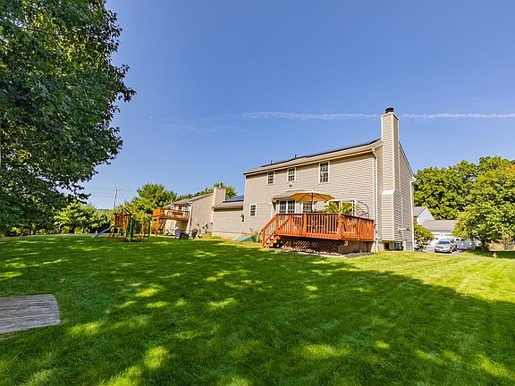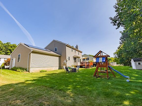 YOUNG COLONIAL IN CUL-DE-SAC NEIGHBORHOOD OF WELL MAINTAINED HOMES! Open concept floor plan with welcoming 2 story foyer & abundant natural light. Front-to-back LR with pellet stove. Eat-in kitchen with neutral finishes, island, recent appliances & pantry. The Study could be a perfect dedicated office or playroom! Master suite with vaulted ceiling, walk-in closet, master bath. 2 more sizable BRs + 2nd full bath! Well lit, unfinished basement with workbench & laundry area. (Future bonus room??) 2 car garage with storage! Situated on grassy, level lot with custom storage shed. Low maintenance vinyl windows & siding. Recent ('17) water heater. High marks for energy efficiency---Leased solar panels! Economical gas furnace with central AC! Surrounded by nature, this West Side neighborhood with hilltop views is one of Worcester's best kept secrets! Nearby access to Tatnuck Square, shopping, conservation land & amenities! First open house on Saturday 10/15 12:30- 2pm.