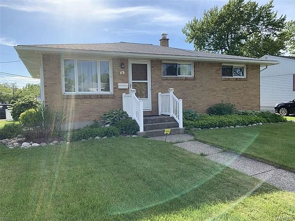 Well cared for 3 bedroom 1 bath home in high demand area! Property features an eat in kitchen with nice cabinets, double sink & all appliances. Bright living room with loads of natural light and a new front door. 3 bedrooms in this ranch with beautiful original hardwood floors, full bath & extra storage space. Full basement with workshop area, laundry room w/ front load washer and dryer and a finished rec room area. Side entrance leads to concrete covered patio and backyard. Vinyl sided, 2.5 car garage with opener & concrete driveway. All new electrical system. Central air. Corner lot. Nice curb appeal only minutes to Thruway!