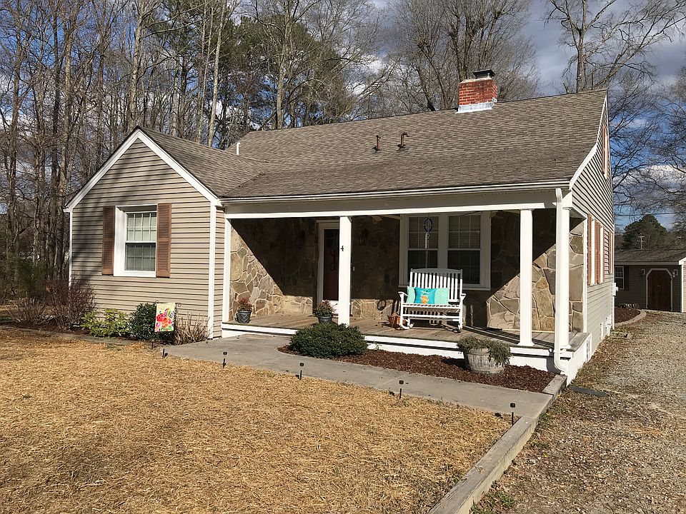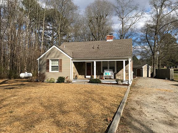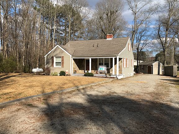 This Cape Cod is stylish inside and out. Porch has stone wall and some front-porch rocking chair space. Living room has gas logs fireplace and spiral staircase to upstairs master suite with jetted tub and a walk-in shower. Laundry room and large walk-in closet is just off the primary bedroom suite. Main level has kitchen and dining space with sliding glass doors to patio. Home has 2 bedrooms and a full bath on 1st floor with Hardwood floors throughout. Back patio is perfect for outdoor sitting and BBQing. Shed and carport convey along with Generac whole house generator. 8 minutes to Ft Pickett and 12 minutes to FASTC. Come take a look!