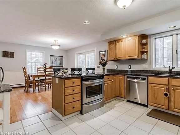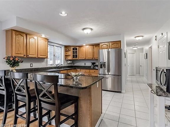 Well maintained Cape with a nice farmers porch, located close to town and schools. There are two entrances, one is the front door and the other is to a tiled mudroom. There is a laundry room (dryer purchased 4/14/18) and half bath. Open kitchen to dining area; granite and SS kitchen appliances. You can access the newer trex deck with built-in bench from the dining area. The living room offers a fireplace w/wd stove insert and hardwood floors. There are built-ins in the formal dining room that enters back into the kitchen. The second floor has 4 nice sized bedrooms, with cork flooring. The master bath has been updated with granite and new paint. The basement has a family room with a built-in entertainment center and there is an exercise area. Additionally, there is a is a work area and plenty of storage. From the basement you can enter the garage. The yard is well maintained with plenty of room to play. ADT Security System in place, swing set and play house do not convey.