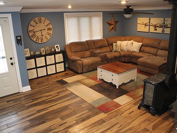 - Fireplace features: wood stove