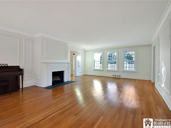 Welcome to this one-of-a-kind ranch-style home, exuding timeless charm and appeal in the heart of Fredonia Village! This inviting residence, offering two bedrooms and 1.5 baths, welcomes you with a spacious living room adorned by an elegant fireplace, setting the stage for intimate gatherings. The formal dining area serves as a versatile space, perfect for a study or an optional third bedroom, while abundant natural light flows through every room, creating a bright and cheerful ambiance. Positioned on a double lot, this property provides both privacy and space for outdoor activities, featuring a side patio with a view of the spacious yard and a private back patio for relaxation. The full basement presents an opportunity for additional living space, whether as a family/game room or extra living quarters. Recent updates include a new bathroom with a double sink vanity and walk-in shower, a new roof, gutters, induction stove, and flooring, ensuring modern comfort in this timeless beauty. With its convenient location and numerous amenities, this home invites you to make it yours.