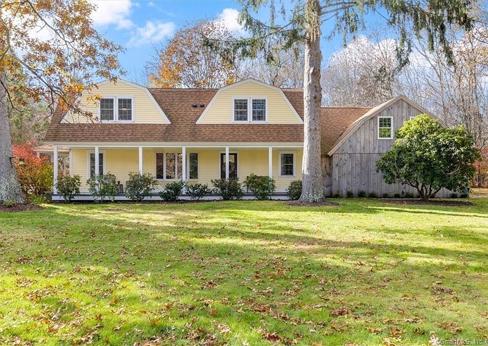 This charming, country home features a full-length front porch with recessed lighting and sits on a level, corner lot. Attached to the home is a post & beam 3-car garage with automatic door openers and a generator hook-up. The open floor plan includes hardwood floors throughout the first floor including an attractive kitchen with gray cabinets, granite countertops and stainless steel appliances with an eat-in space at the counter. The first floor offers a dining room, living room and a den, as well as a full bathroom. The 2nd floor was totally remodeled in 2021. Here there are 2 large bedrooms each with its own full bath and walk-in closet. The laundry is on this level and both washer and dryer are new. Access to the unfinished space (approx. 460 square feet) above the garage is on this floor...A wonderful opportunity to make it fit your needs whether it be an extra bedroom (1000 gallon septic tank), studio, office or playspace; it comes with architectural drawings(valued at $4,800) and is available for the next owner. Further upgrades include replacement windows, new well system equipment, a tankless hot water heater, new ceiling fans, and new interior lighting. This location offers convenience to the Hadlyme Market, Hadlyme Ferry and Gillette's Castle State Park. The Lyme Consolidated School is a 5-minute drive away. You will love the curb appeal of this home! Owner Agent related.