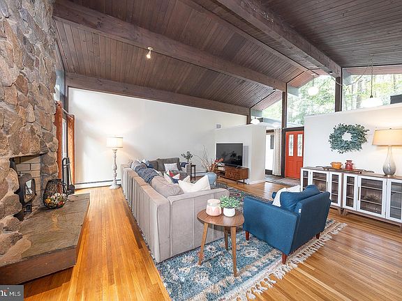 Welcome to this exceptional 4-bedroom, 3-bath contemporary home located on a private, wooded, flat 1-acre lot in highly sought-after Schuylkill Township, within the Phoenixville School District. Designed with a classic contemporary feel and updated with modern touches, this home offers both character and comfort, surrounded by the peace and tranquility of Valley Forge Mountain living. As you step inside, you’re greeted by a dramatic soaring wood cathedral ceiling that sets the tone for the open and airy main living spaces. Walls of glass invite an abundance of natural light, creating seamless views of the private backyard and mature trees. The expansive living room boasts a wood stove, perfect for cozy evenings, and dual sliding doors that open to a spacious 12x20 deck, ideal for outdoor entertaining or quiet relaxation. A second deck off of the kitchen leads to a wonderful 14x7 temperature and humidity controlled greenhouse, offering year-round gardening opportunities. The kitchen provides an oversized footprint, awaiting your personal touch to transform even further into the heart of the home. Plenty of space to add a large island or dining table. The wonderful, newer stainless refrigerator, large slider to the side updated deck and greenhouse, and some classic contemporary lighting are a great start. Adjacent, the dining area, with a large picture window and sliders to the deck, flows easily into the main living spaces, making entertaining effortless. The primary suite offers a true retreat, featuring an updated en-suite walk-in shower, private access to the deck, and tranquil views. Three additional generously sized bedrooms and two additional full baths provide ample space for family, guests, or a home office. All bedrooms are on the main floor. The finished walkout basement adds versatility with another wood stove, a large recreation area, and direct access to the outdoors — perfect for game nights, a media room, or extended living space. The finished basement adds approx. 400+ sq feet of additional living space. This home has been well cared for with many important updated: brand new well water system with UV treatment (2021), new septic system (2021), interior and exterior painting (2021), most windows and doors replaced 2022, newer high-end refrigerator, and newer washer and dryer (2024). The property also includes a 2-car garage, driveway parking for 4+ cars, and an invisible fence system with 2 dog collars. Beyond the home itself, residents of Valley Forge Mountain can opt to join the neighborhood association and swim club, offering year-round social and recreational activities. The location is unmatched — enjoy easy access to Valley Forge Park, the Schuylkill River Trail, downtown Phoenixville’s shops and dining, the YMCA, and major commuter routes including 202, 422, 676, and the PA Turnpike. With its unique design, serene setting, and thoughtful updates, this property is ready to welcome its next owner to enjoy all the benefits of contemporary living in a tranquil, yet convenient location. Showings begin Friday 9/26. Professional photos coming soon.