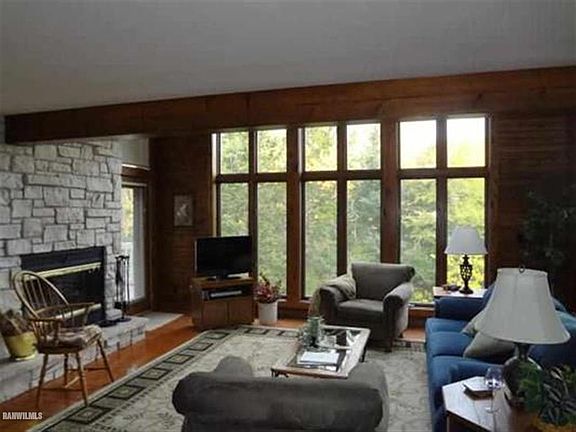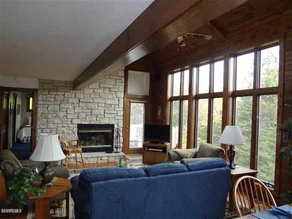 EXCEPTIONAL VALU!!!! Extremely well maintained home situated in a private setting in the Vista Ridge neighborhood. This lovely 3 bedroom home features a great room with stone floor to ceiling fireplace, vaulted wood ceilings, hardwood floors and exceptional trim throughout. Beautiful views from every window, weather it be the nicely landscaped yard, woods or panoramic vista. Dining area leads to deck and screened porch. Spacious custom kitchen has built-in appliances, island and pantry cupboard. Main floor bedroom offers private bath and deck. Fantastic upper level master suite boasts a sitting loft with stone fireplace, beautifully appointed bath with whirlpool tub, double sink vanity and separate shower. Great views from private deck. Walk out lower level family room features pool table, game area, built in bookcase, fireplace and television cabinet. Lower level bedroom has walk in closet, private bath and built in bookshelves. Outdoor living areas include several decks, limestone patio and hot tub. The grounds are nicely landscaped with terracing and perennial beds. This home is beautifully decorated and most furnishings are included in price. See list of inclusions. One car attached garage with workbench.