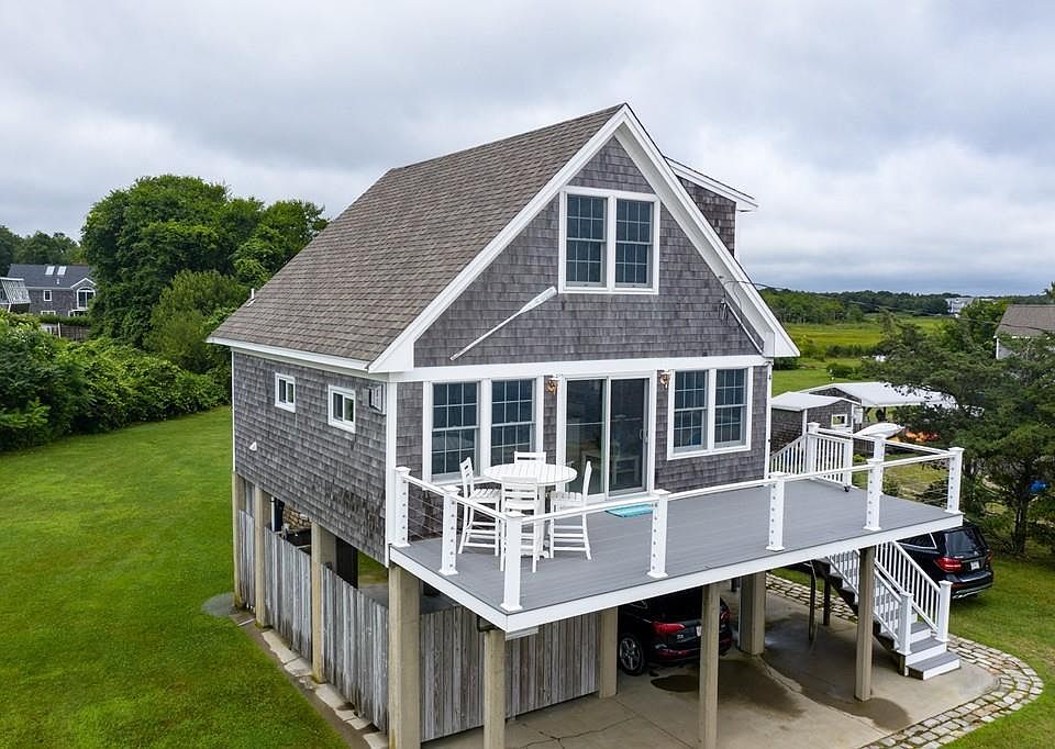 Enter through the old pillars of the private Brant Beach neighborhood, pass a row of waterfront homes, follow the bend past a yard of boats, and there you find Howard Beach - an enclave of direct access waterfront homes. 4 Howard Beach was completely renovated in 2013. This YEAR ROUND 2-bedroom/1.5-bath home has new everything - new Andersen windows, foam insulation, roof, plumbing/electrical, kitchen with stainless appliances and granite counters/island, hard-wood & laminate floors, wood tongue & groove ceilings, gas stove in living room and most importantly, tranquil waterfront living. Spend time on your deck reading, swim or launch your kayaks at your very own beach and boat ramp directly in front of the house, or host your next barbecue in your large backyard. This home also features a back cottage shed with a sleeping porch and 1/2 bath. Town sewer. Well water. Electric & propane gas heat. This beautiful home offers unobstructed and expansive views of Buzzards Bay and beyond.