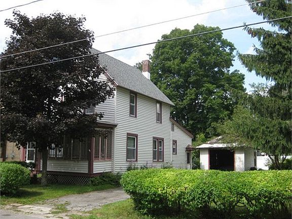 Village home within walking distance of shopping & school. First floor bathroom with spacious kitchen & living area. Natural woodwork & hdwood floors add to the charm. 3 bedrooms on the 2nd floor. Updates include vinyl siding, replacement windows, newer roof & furnace. Add to this a side yard & enclosed front & rear porches. Needs some finishing touches. Owner will consider "Owner Financing" with 20% down.