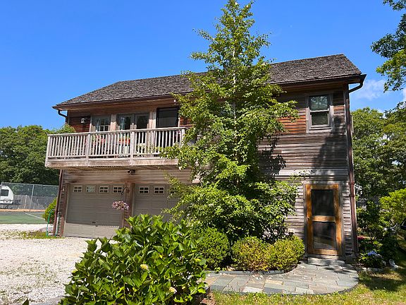 This delightful property, near Morning Glory Farm and a short bike ride to downtown and the beaches, is versatile with so much to offer! The light-filled home has an open concept floor plan on the second level with 12-foot vaulted ceilings, a cheerful kitchen with ample cabinets and a pantry, and a living/dining area with built-ins and sliders to the deck. Also on this level are 2 bedrooms also with vaulted ceilings, and a shared bathroom with tiled shower and tub. The ground level has a 3rd bedroom with a full bathroom and kitchenette! There's a fantastic 2-car garage with windows, sheet rock, gleaming painted floors, and multiple storage cabinets. The dwelling is tied into town sewer which allows the new owner to have a total of 7 bedrooms! The lot allows for a MAIN HOUSE AND GUEST HOUSE with no 5-year waiting period. Other details: A tennis court that can be re-imagined for pickle ball, 2 sheds, low-maintenance cedar clapboard siding and trim, hand-cut cedar shake roofing with a 60-year life expectancy, a charming Dutch door, Andersen windows and sliders, trash compactor, garbage disposal, ceiling fans, and an efficient domestic hot water heater. Don't miss out on this special opportunity!