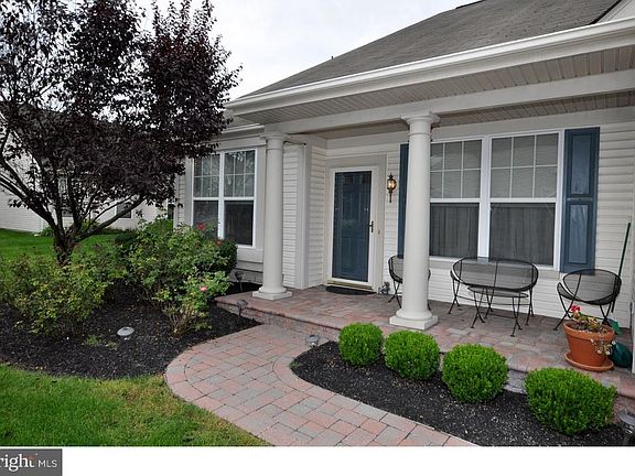 Your gonna love this home because Mrs. Clean lives here. This is the popular Hidcote model that offers a fabulous eat in kitchen with an ISLAND that's perfect for entertaining and beautiful white cabinets. There is a formal living room and dining room plus a bright and airy family room. The Master bedroom is spacious and has a walk in closet with a Built in Safe. The master bath offer a garden tub and stall shower, cabinets will custom drawers and a built in HEATER to keep you cozy after your shower. There is a second bedroom that offers privacy for your guests and a full bath. The best part is the BRICK driveway that is long and can park 3 cars. Village Greenes is a wonderful development and offers a variety of activities for active adults. There is a CLUBHOUSE with an exercise room and card room, outside there is a salt water swimming pool and tennis courts for a low monthly fee that also cover snow removal. Easy access to major roads and shopping. What a great lifestyle.