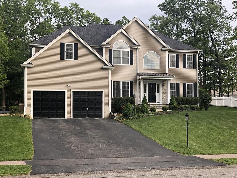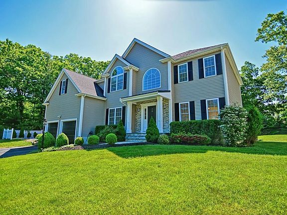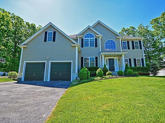 Beautifully situated in one of Medway's most sought after sub-divisions, this single-owner custom colonial has 4 bedrooms, 2.5 bath offering 3,400 sq ft on main floors plus an additional 1,000 sq in the finished basement. Custom craftsmanship and design is present throughout. Enter the home from the custom porch to a two story foyer which opens to a large kitchen with pantry, granite, cherry cabinets, center island, and chef's range with double oven. Off the kitchen is a sun filled dining and living room. The kitchen opens to large family room with gas fireplace. Sliders lead to a new paver patio, shed, basketball court, solar, and large landscaped yard with sod, irrigation, abutting conservation. Office and 1/2 bath complete the main floor. 2nd level with luxurious master bed with spa-like bath and shower, custom walk-in closet, and 2 sitting areas. 3 additional bedrooms, 2nd floor laundry, and guest bath. Finished basement includes large gym and TV room. Plenty of storage space.